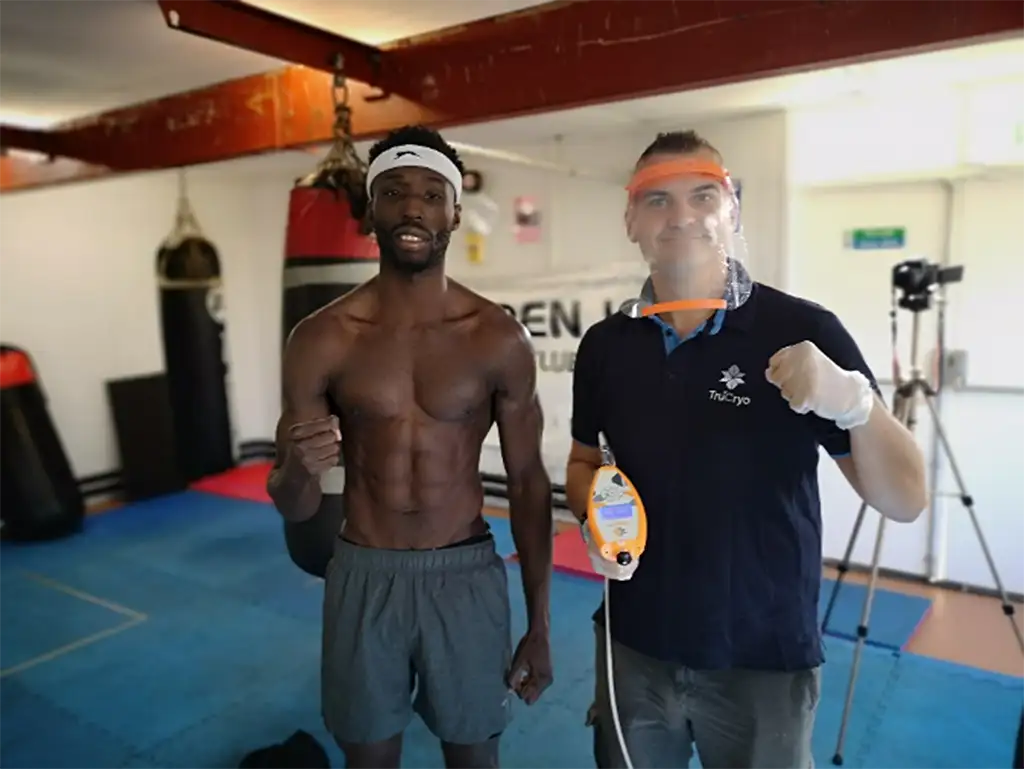 TruCryo Technical Trainer, Nick Peters, has been working with John Harding Jr’s camp to prepare for this fight by incorporating cryotherapy using the Kaasen handheld device. Working closely with Harding’s physio, Chirag Patel (Clinical Director at MyPhysio, Croydon), the targeted cryotherapy sessions have helped with Harding’s recovery, pre and post-workout during his brutal training regime.